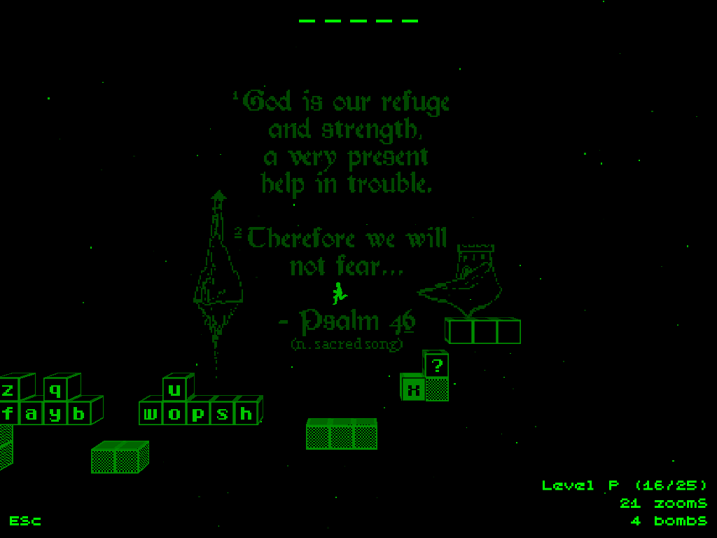 In Plangman, you take on the role of a space pilot imprisoned in a dungeon of forgotten memories. Guess words to reconstruct your past, and use what you learn to rescue the girl you love and defeat the wizard who holds you both prisoner.